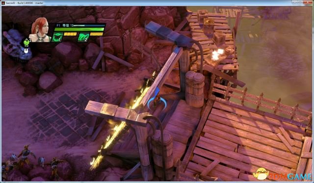 8. 遇到下一个存盘点先别忙着激活,打破桥头的栅栏可以明显的看到平台上有个宝箱。 9. 赞恩使用天线收集从城堡传来的负能量,应该怎么阻止他呢? 10. 阿利亚提供了解决办法,我们必须摧毁固定天线的两个锚点。 锚点很硬需要多次攻击才能打碎,同时还有各种各样的小怪骚扰。 11. 打碎两个锚点后,天线没有了支撑物而坠落,但是事情还没完。 敌人刷出了一只精英暗影萨满对我们进行攻击。 12. 英雄已经来到了城堡的脚下,必须先击败几波小怪的围攻,然后站在高台上观战的精英火焰萨满会跳下来亲自单挑玩家。 火焰萨满会释放火焰链,而且能够聚能在地上释放炸裂火球,躲避好后面一招干掉它并不算难。 13. 打败精英火焰萨满后获得城堡钥匙,打开大门进入城堡。 14. 昔日繁华似锦的帕拉博城塞已经变成了鬼怪和兽人的欢乐窝, 我们唯一能做的就是摧毁赞恩的装置为所有人复仇。 15. 进入城堡的内院后,还有一只更厉害的“守门人”在等待我们。 和之前的BOSS战不同,这次会刷出大量小怪骚扰我们,甚至有可能挡住我们躲闪的道路, 尽量使用大范围重攻击技巧消灭脆弱的小怪,击中火力攻击“守门人”。